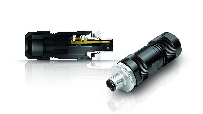 In industrial automation, the transmission of high electrical power via compact M12 components has become a fundamental requirement. The K coding indicates 5-pin connectors that are particularly suitable for power supply in AC applications, such as drives or frequency converters, with up to 630 V(AC) and up to 12 A. DC compact drives, decentralized I/O modules and various other DC-powered automation components connected to fieldbus systems are among the target applications of the likewise 5-pin connectors with L coding. They are designed for rated voltages up to 63 V(DC) and for rated currents up to 16 A.