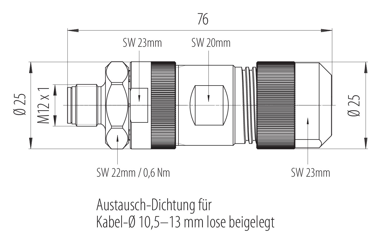 - Zum Verriegeln des Kabelsteckverbinders mit dem Gerätesteckverbinder wird der Gewindering „handfest“ (ca. 60 cNm) angezogen.