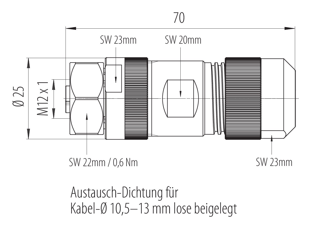 - Zum Verriegeln des Kabelsteckverbinders mit dem Gerätesteckverbinder wird der Gewindering „handfest“ (ca. 60 cNm) angezogen.