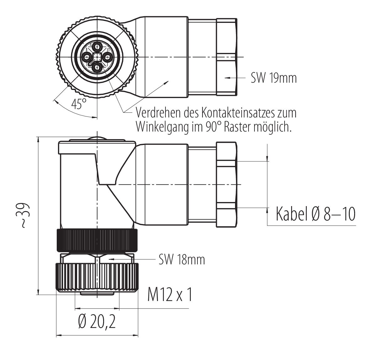 | Steckverbinder-Bauform | Winkeldose |