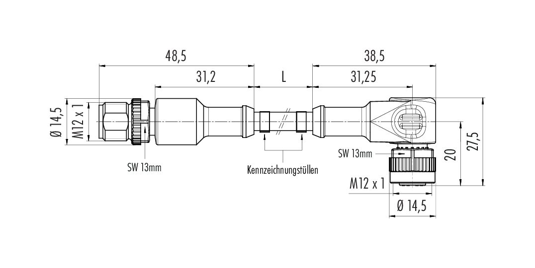 | Steckverbinder-Bauform | Verbindungsleitung Kabelstecker - Winkeldose |