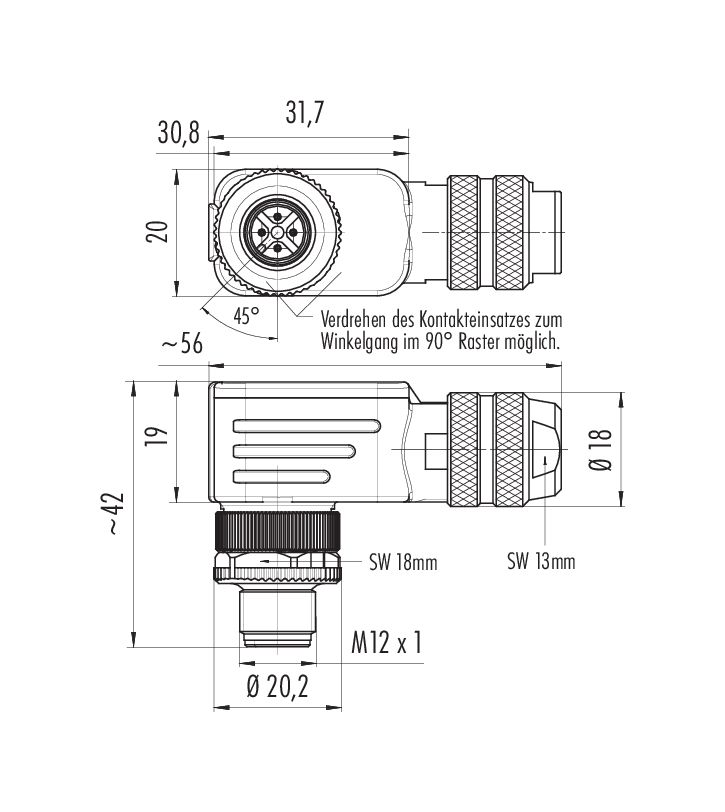 Verdrehmöglichkeit 90° (4 Kodiermöglichkeiten)