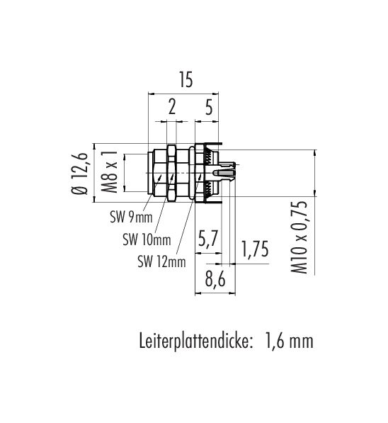 M8 Flanschdose, Polzahl: 4, schirmbar, THT, IP67, UL 2238, M10x0,75, Rückwandmontage