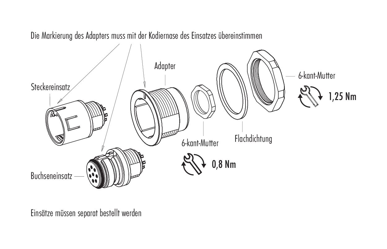 - Durch den Anwender sind geeignete Sicherheitsvorkehrungen zu treffen, damit der Steckverbinder nicht versehentlich gelöst werden kann.