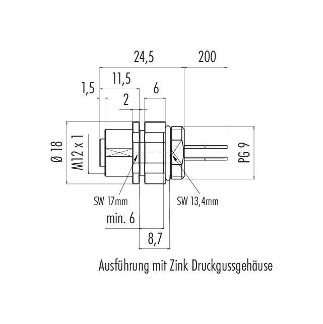 | Anschlussquerschnitt | 0,25 mm² / AWG 24 |