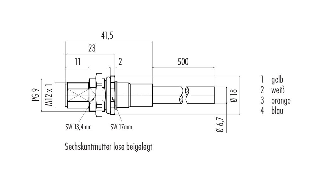 Kabellänge 0,5 m (Weitere Längen sind auf Anfrage möglich.)