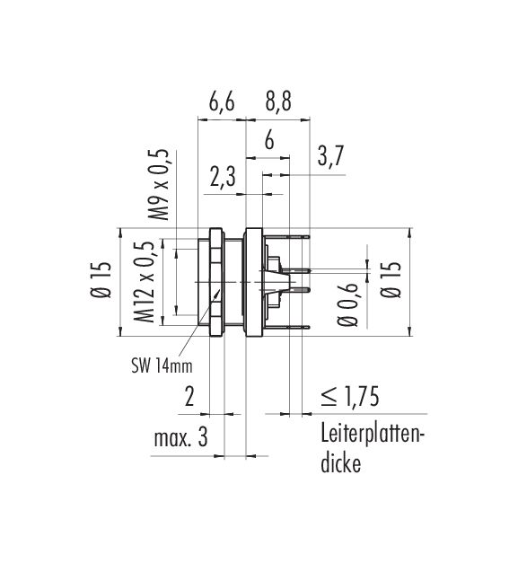 M9 Flanschdose, Polzahl: 4, schirmbar, THT, IP67, M12x0,5, Rückwandmontage
