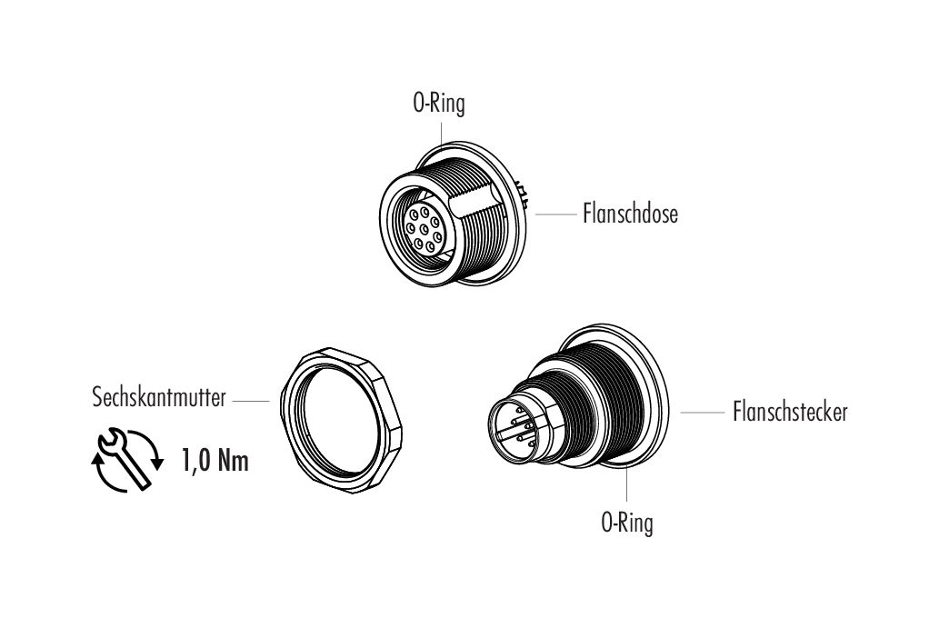- Steckverbinder mit der Schutzart IP67 und IP68 sind nicht für die Verwendung unter Wasser geeignet. Beim Einsatz im Freien müssen die Steckverbinder gesondert gegen Korrosion geschützt werden. Weitere Infos zu den IP Schutzarten siehe im Bereich Downloadcenter „Technische Informationen“.