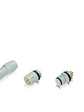 720 Series snap-in miniature circular connectors have 3 to 12 contacts depending on the application. The medical-grade design is DEHP-free, grey-white, similar to RAL 9002, and is available as cable or panel mount connectors. Other colors can be ordered. The connector system is IP67 rated, the cable connectors have solder terminals, the panel mount connectors have solder or dip solder terminals. Users can expect more than 500 mating cycles.