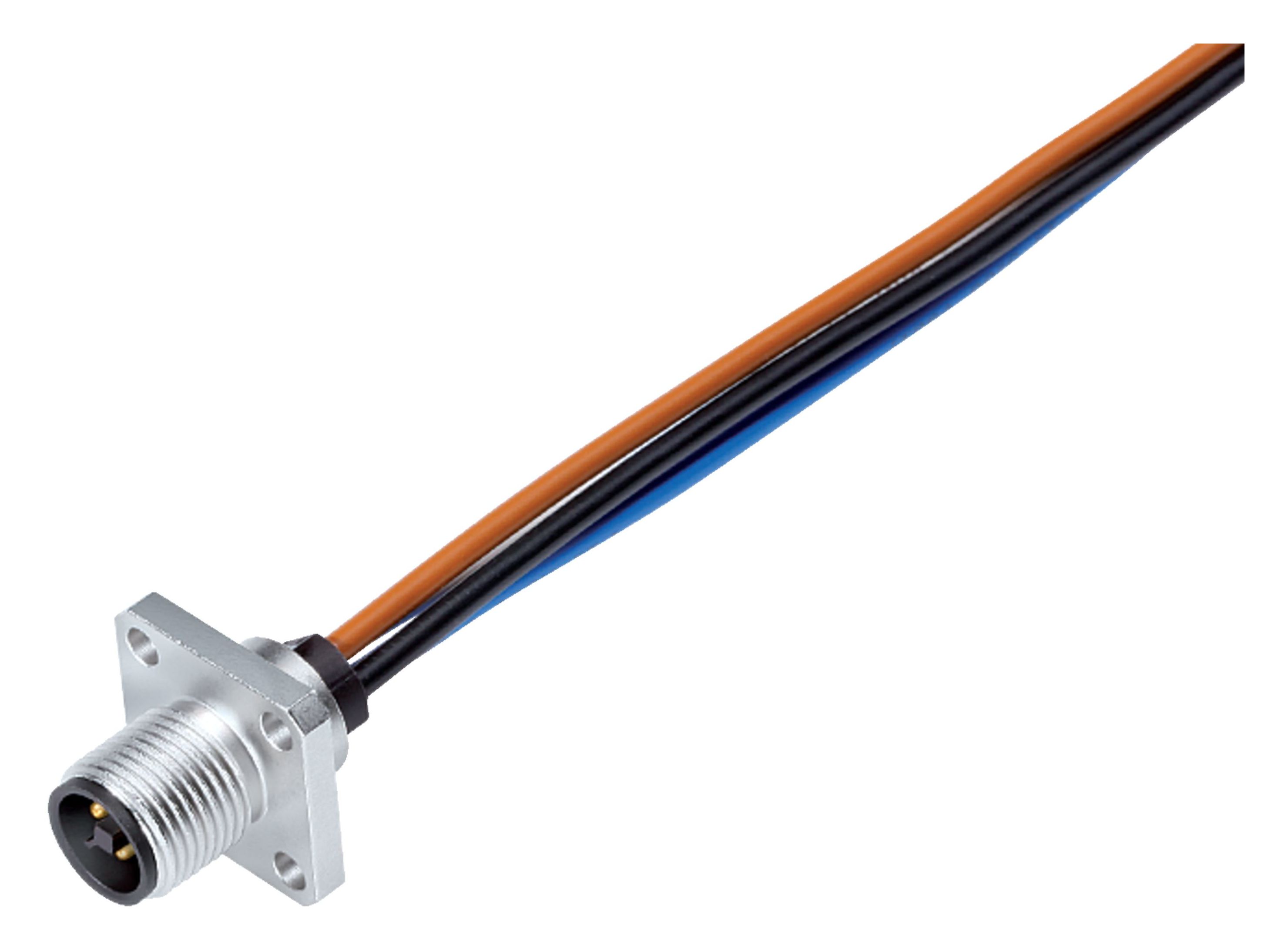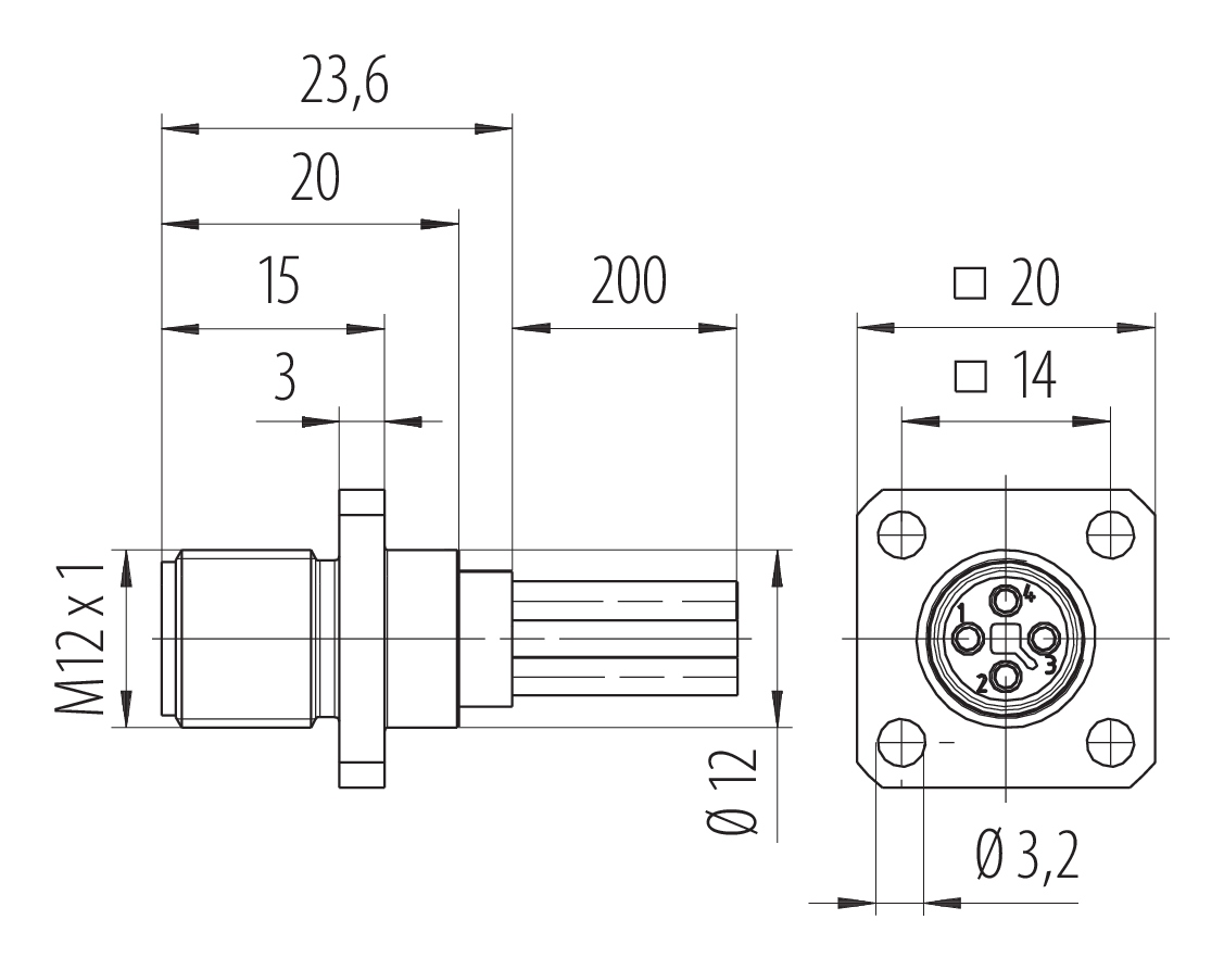 M12 Embase mâle, carré, Contacts: 4, non blindé, fils, IP40, UL 2238, M3 (4x), Montage frontal