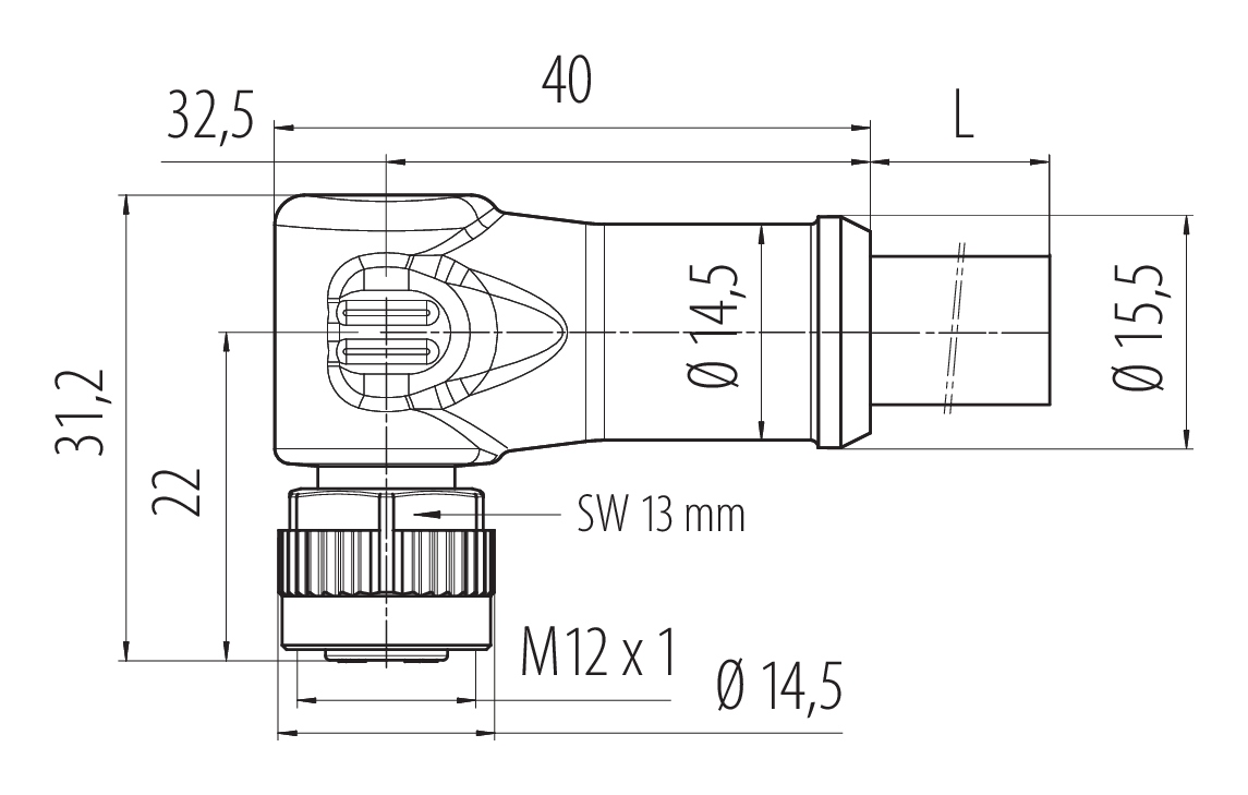 | Design du connecteur | Connecteur femelle coudé |