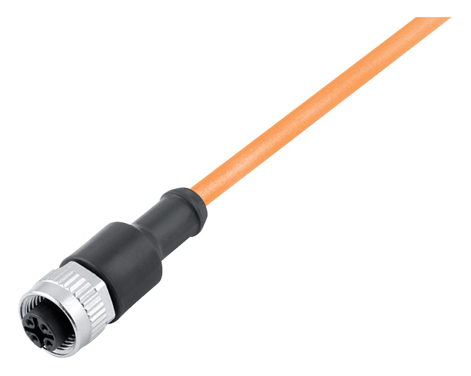 M12 Connecteur femelle, Contacts: 4, non blindé, surmoulé sur le câble, IP68/IP69K, UL 2238, PUR, orange, 4 x 0,34 mm², pour les applications de soudage, 5 m