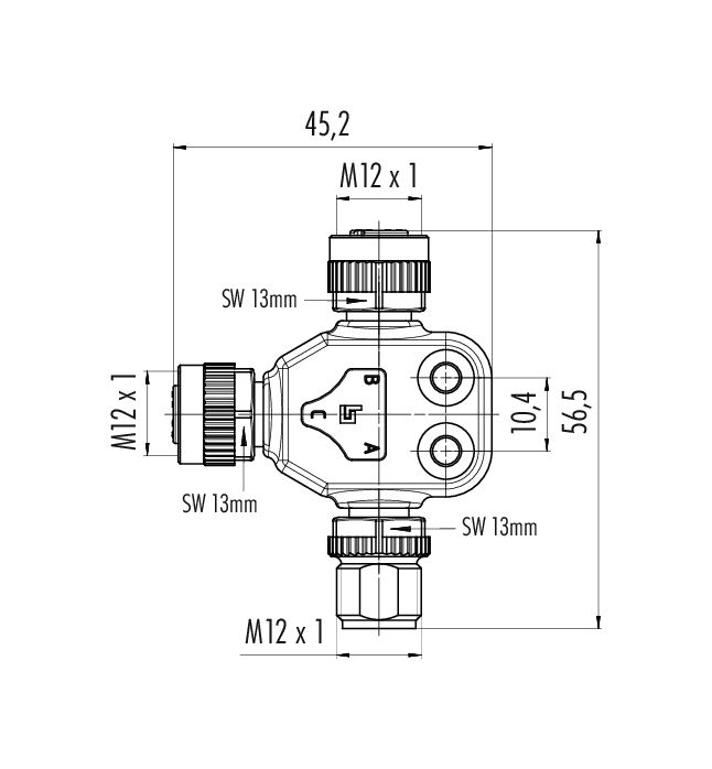 M12 Répartiteur double, T-distributeur, mâle - 2 femelle, Contacts: 5, non blindé, enfichable, IP68, UL 2238
