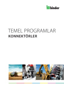 3 Daha fazla ayrıntı ve bilgi için www.binder-connector.de adresini ziyaret ediniz Seri Seriler Sayfa Koruma Sınıfı Voltaj Akım Kontak Sayısı Subminyatür Konnektörler Sayfa 5–26 Snap-in IP40 719 · 709 5 IP40 60 V 3 A 3–5 Snap-in IP67 620 7 IP67 125 V 1–3 A 3–8 Bayonet 710 11 IP40 125 V 1 A 2–8 Micro Push-Pull 420 13 IP67 125 V 1 A 3–5 Push-Pull 430 15 IP67/IP40 125 V 1–4 A 3–8 M9 IP40 711 17 IP40 125 V 1–4 A 2–8 M9 IP67 712 · 702 19 IP67 125 V 1–4 A 2–8 Minyatür Konnektörler Sayfa 27–58 Snap-in 720 27 IP67 60/250 V 2–7 A 3–12 Bayonet 678 31 IP40 60/250 V 1–7 A 2–24 Bayonet NCC 770 35 IP67 175 V 2 A 8 Push-Pull 440 37 IP67 60/250 V 1–7 A 3–19 M16 IP40 581 · 680 · 682 41 IP40 60/250 V 1–7 A 2–24 M16 IP67 423 · 723 · 425 49 IP67 60/250 V 1–7 A 2–24 Güç Konnektörleri Sayfa 59–78 M23 623 59 IP67 60/250 V 7,5–16 A 6–19 RD24 692 · 693 65 IP67 250/400 V 10–16 A 3–6+PE Bayonet HEC 696 73 IP68/IP69K 60/400 V 3–25 A 8 (4 + 3+PE) RD30 694 77 IP65 60/400 V 3–20 A 4+PE–24 Konnektörler RAL 9002 Sayfa 79–84 Snap-in IP67 620 79 IP67 125 V 1–3 A 3–8 Snap-in 720 81 IP67 60/250 V 2–7 A 3–12 Bayonet NCC 770 83 IP67 175 V 2 A 8 Otomasyon Teknolojisi – Sensörler & Aktüatörler Sayfa 85–136 M5 707 85 IP67 60 V 1 A 3–4 M8 768 · 718 89 IP65/IP67 30/60 V 1,5 A –4 A 3–8 M12-A 713 · 763 101 IP67/68/69K 30/250 V 2–4 A 3–12 Aşağıdakiler için aksesuar M12 M12 127 Bağlantı kabloları 765 131 IP65–68 30/250 V 4 A 3–5 Otomasyon Teknolojisi – Dağıtıcılar · AS arayüz Sayfa 137–144 Dağıtıcılar · AS arayüz 772 · 775 137 IP67 10/30 V 4 A — Otomasyon Teknolojisi – Data İletimi & Güç Kaynağı Sayfa 145–182 M12-B 715 · 766 145 IP67/68 125/250 V 4 A 4–5 M12-D · M12-X 825 · 876 157 IP67 250 V 4 A 4 M12-S 814 167 IP67 630 V 12 A 3+PE M12-T 813 171 IP67 60 V 12 A 4 7/8‘‘ 820 · 870 177 IP67 300 V 8–12 A 2–4+PE Otomasyon Teknolojisi – Solenoid Valf Konnektörleri Sayfa 183–196 Tip A 210 183 IP65/67 24/250 V 2–10 A 2–3+PE Tip B 220 188 IP65/67 24/250 V 2–10 A 2+PE Tip C 230 193 IP65/67 24/250 V 2–10 A 2–3+PE İndeks Sayfa 197–206 Sipariş numarası indeks 197 Çapraz referans listesi 205 Teknik Bilgi Sayfa 207–210 Açıklamalar 207 Içindekiler