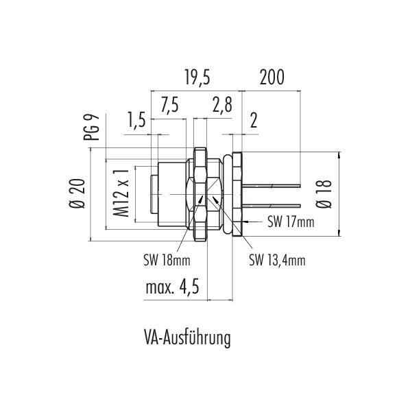 | Anschlussquerschnitt | 0,25 mm² / AWG 24 |