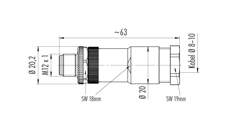 M12 Kabelstecker, Polzahl: 5, 8,0-10,0 mm, ungeschirmt, schraubklemm, IP67, UL 2238, VDE, für die Spannungsversorgung (Power)