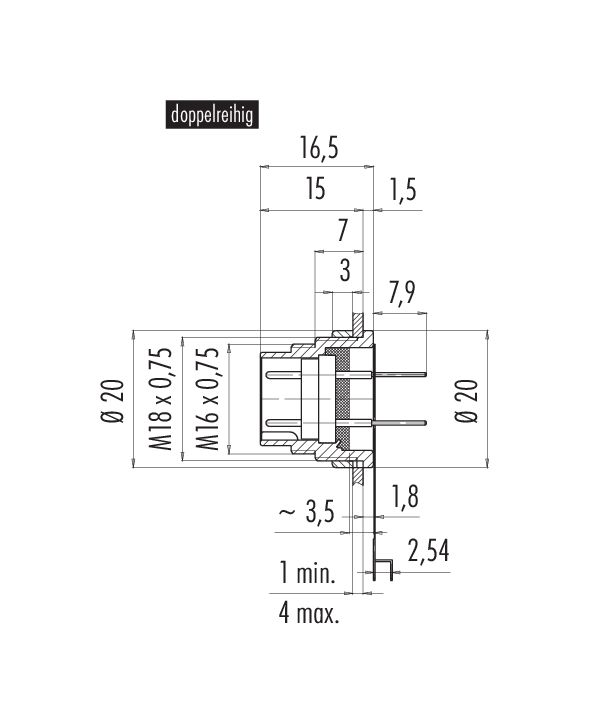 4. M16 Flanschstecker, Polzahl: 12 (12-a), ungeschirmt, THT, IP40, M18x0,75, Rückwandmontage