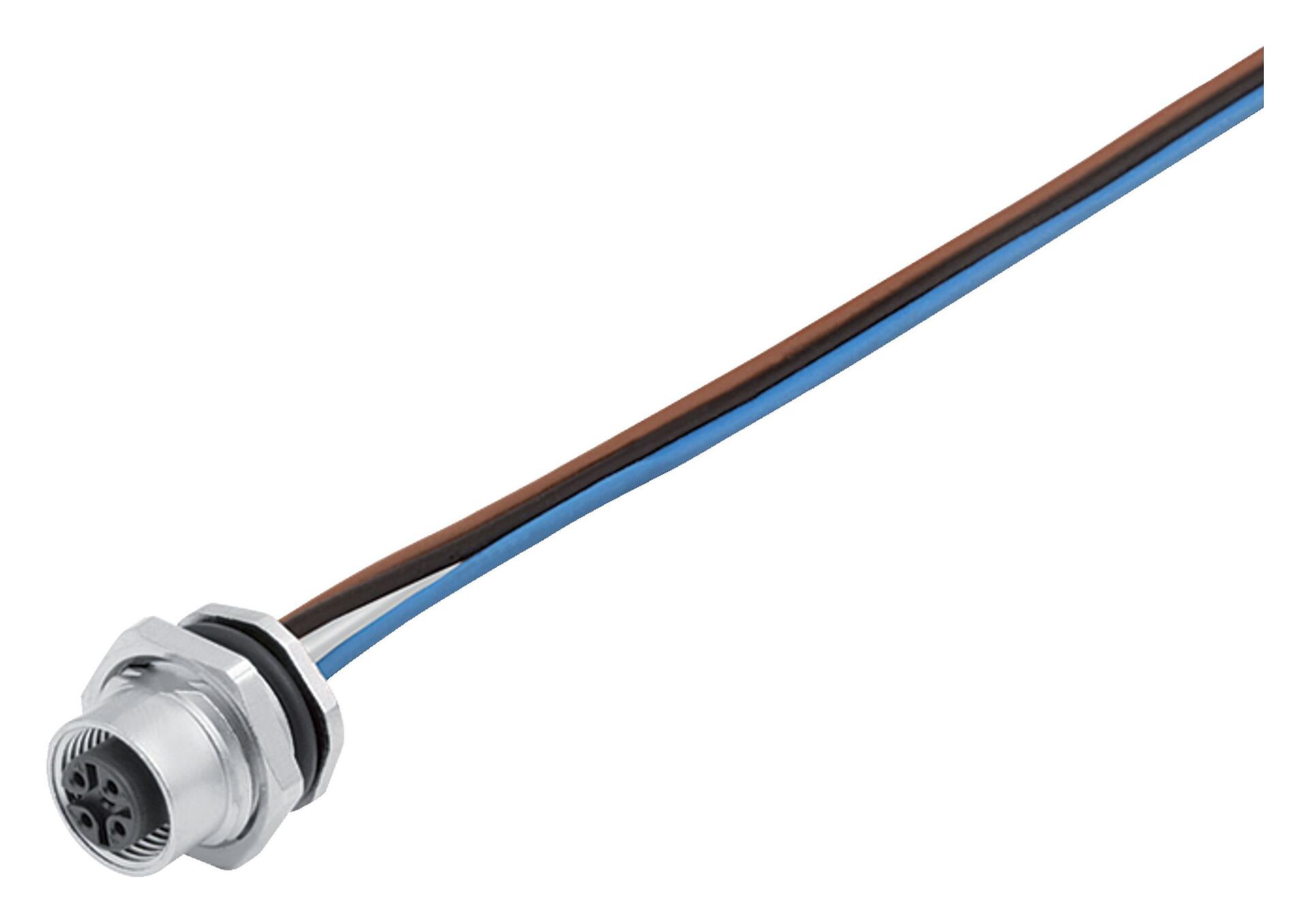 M12 Female panel mount connector, Contacts: 5, unshielded, single wires, IP68/IP69K, UL 2238, M16x1.5, Rear mounting