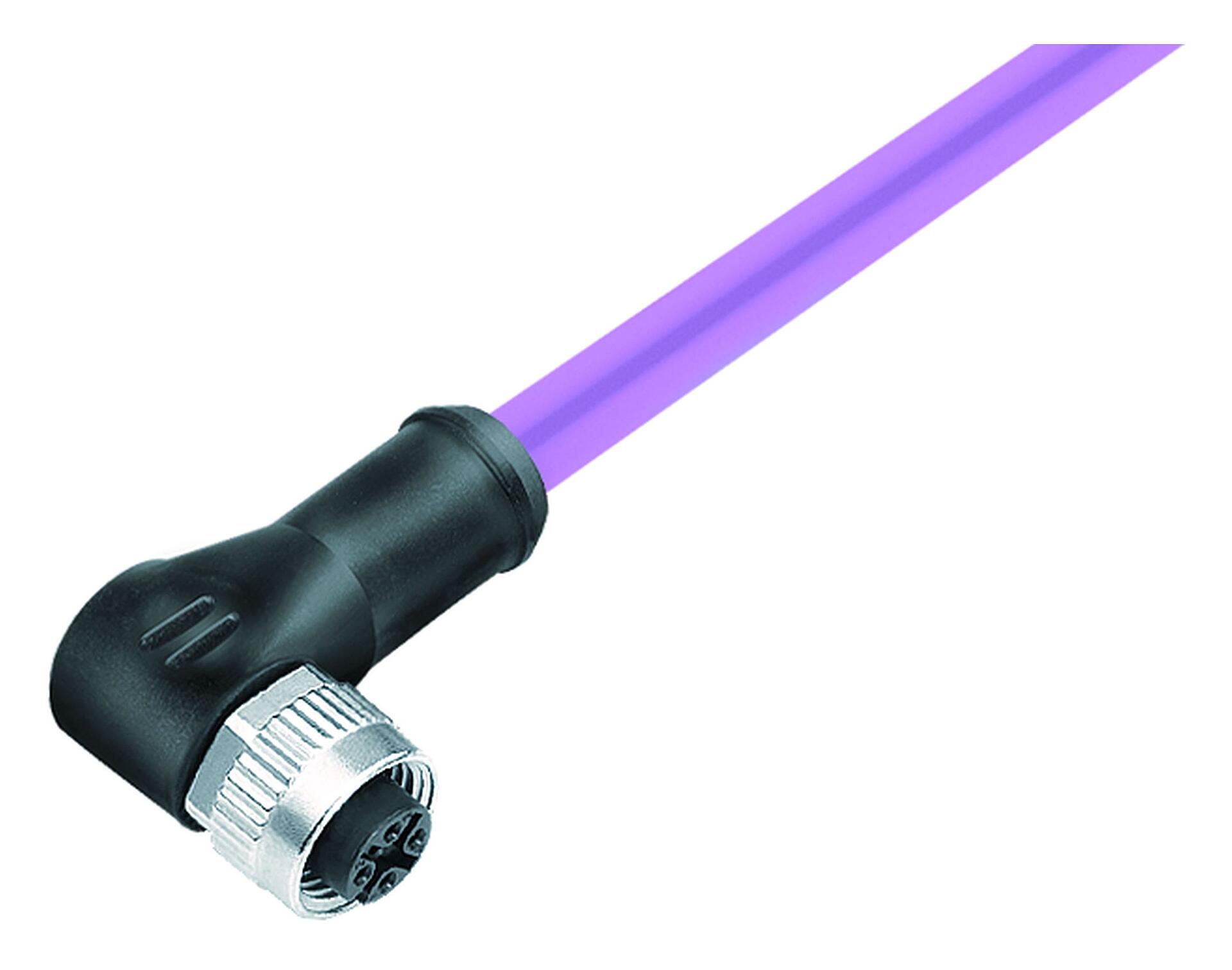M12 Female angled connector, Contacts: 5, shielded, moulded on the cable, IP67, UL 2238, CAN-Bus, PUR, violet, 1 x 2 x AWG 22 + 1 x 2 x AWG 24, 10 m