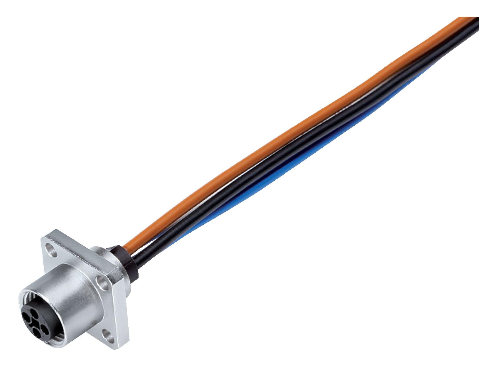 M12 Embase femelle, carré, Contacts: 4, non blindé, fils, IP40, UL 2238, M3 (4x), Montage frontal, coulé