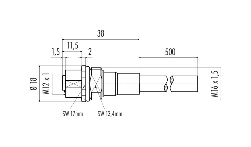 - Pour éviter l'ouverture involontaire du connecteur, lorsqu'il est utilisé dans des circuits dont la tension est dangereuse au toucher, le fil entre le boîtier et la tête du connecteur doit être fixé avec un adhésif cyanoacrylate approprié. Ceci ne s'applique pas aux connecteurs utilisés dans les circuits SELV et PELV selon la norme IEC 61140 (EN 61140, VDE 0140-1).