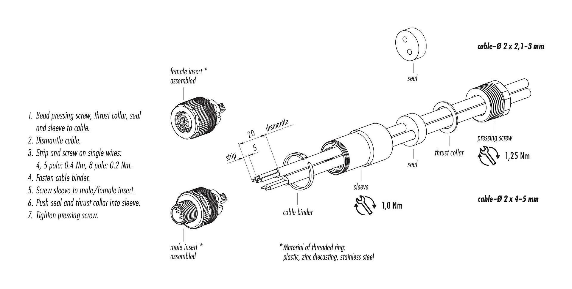 - To lock the cable connector with the device connector, the threaded ring is tightened "hand-tight" (approx. 60 cNm).