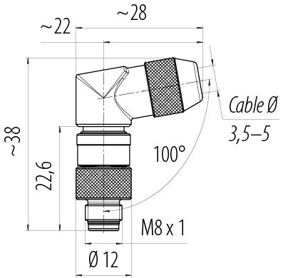 M8 Úhlová zástrčka, : 4, 3,5-5,0 mm, stínitelné, pájka, IP67, UL 2238