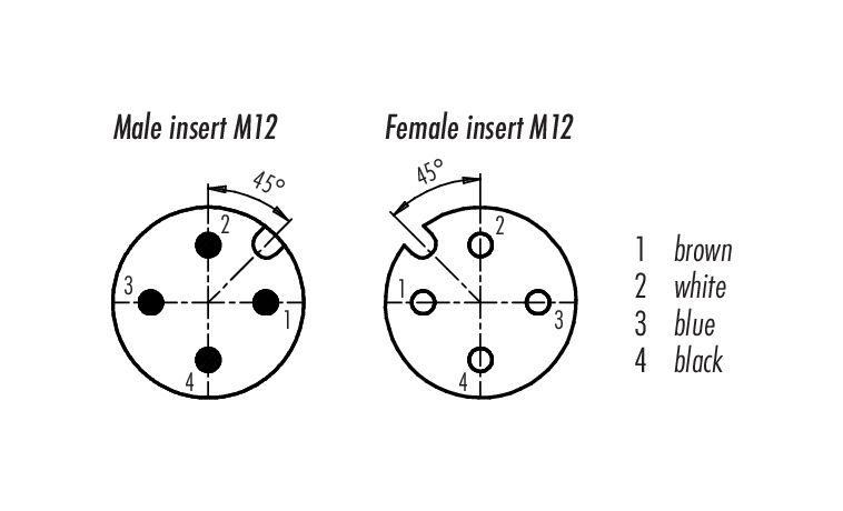 M12 Liitäntäkaapelin kaapelipistoke - kaapelirasia, Napojen määrä: 4, suojattu, suihkutettu kaapelille, IP67, UL 2238, PUR, musta, 4 x 0,34 mm², 2 m