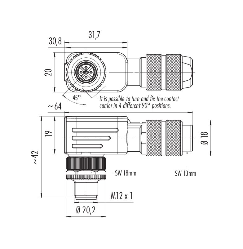- Les connecteurs avec une protection de boîtier IP67 et IP68 ne sont pas adaptés à une utilisation sous l'eau. En cas d'utilisation à l'extérieur, les connecteurs doivent être protégés séparément contre la corrosion. Pour plus d'informations sur les degrés de protection IP, veuillez vous référer au centre de téléchargement "Informations techniques.