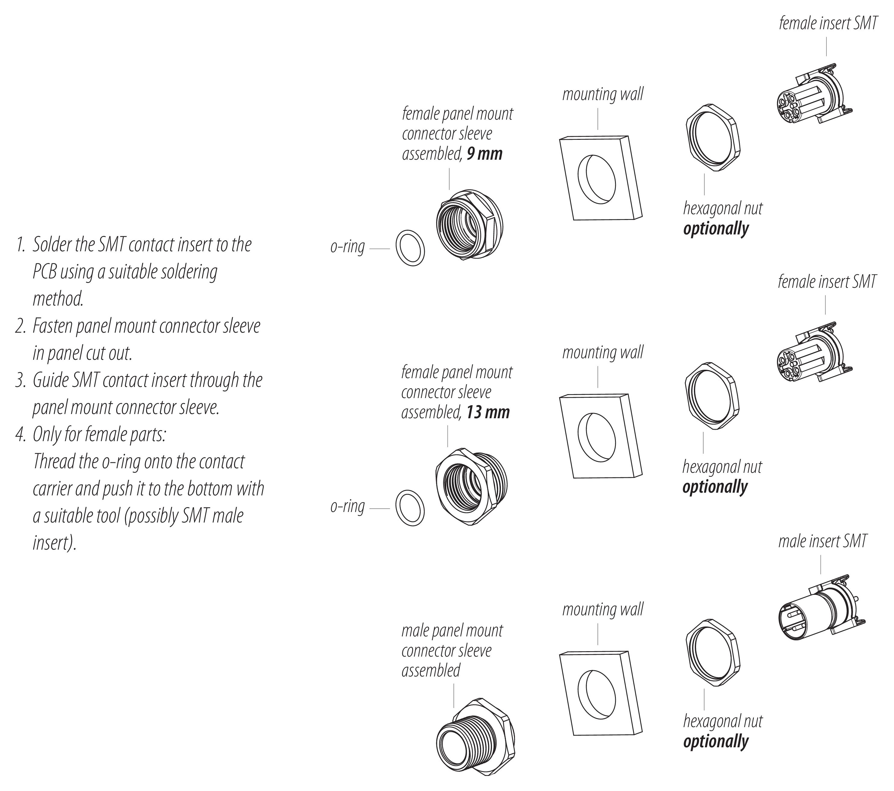 - Les connecteurs utilisés dans des circuits dont la tension est dangereuse pour le toucher ne peuvent être installés et utilisés que par des personnes ayant une formation en électrotechnique ou sous leur supervision, en tenant compte des réglementations et normes applicables.