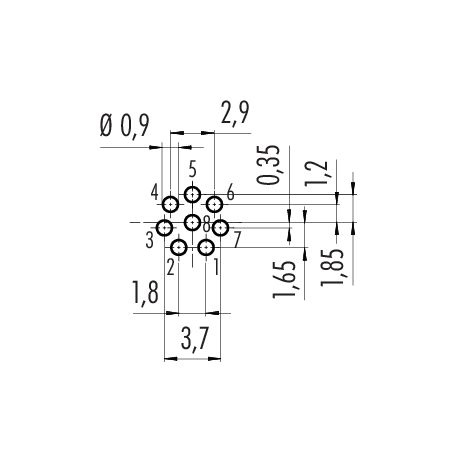 M8 Female panel mount connector, aantal polen: 8, onafgeschermd, THT, IP67, UL 2238, M12x1,0, Achterwandmontage