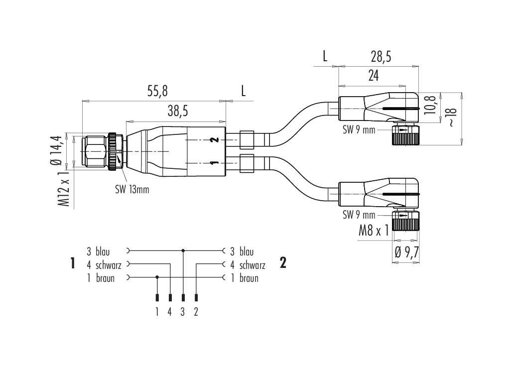 | Steckverbinder-Bauform | Kabelsplitter Kabelstecker - 2 Winkeldosen |