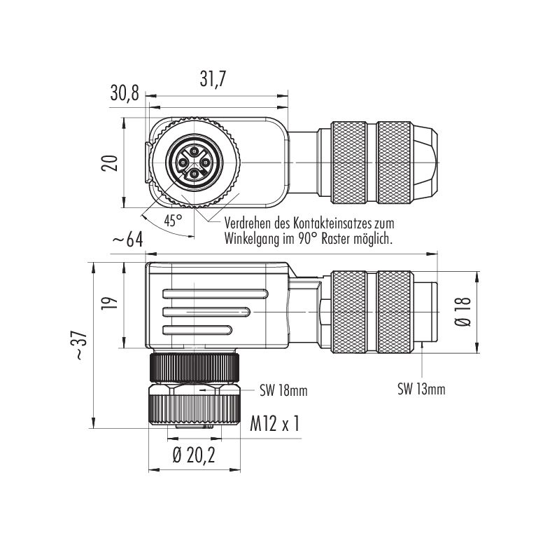 | Verdrehmöglichkeit | 90° (4 Kodiermöglichkeiten) |