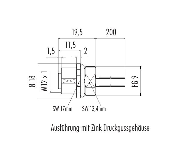 M12 Flanschdose, Polzahl: 4, ungeschirmt, Litzen, IP67, UL 2238, PG 9, Frontmontage