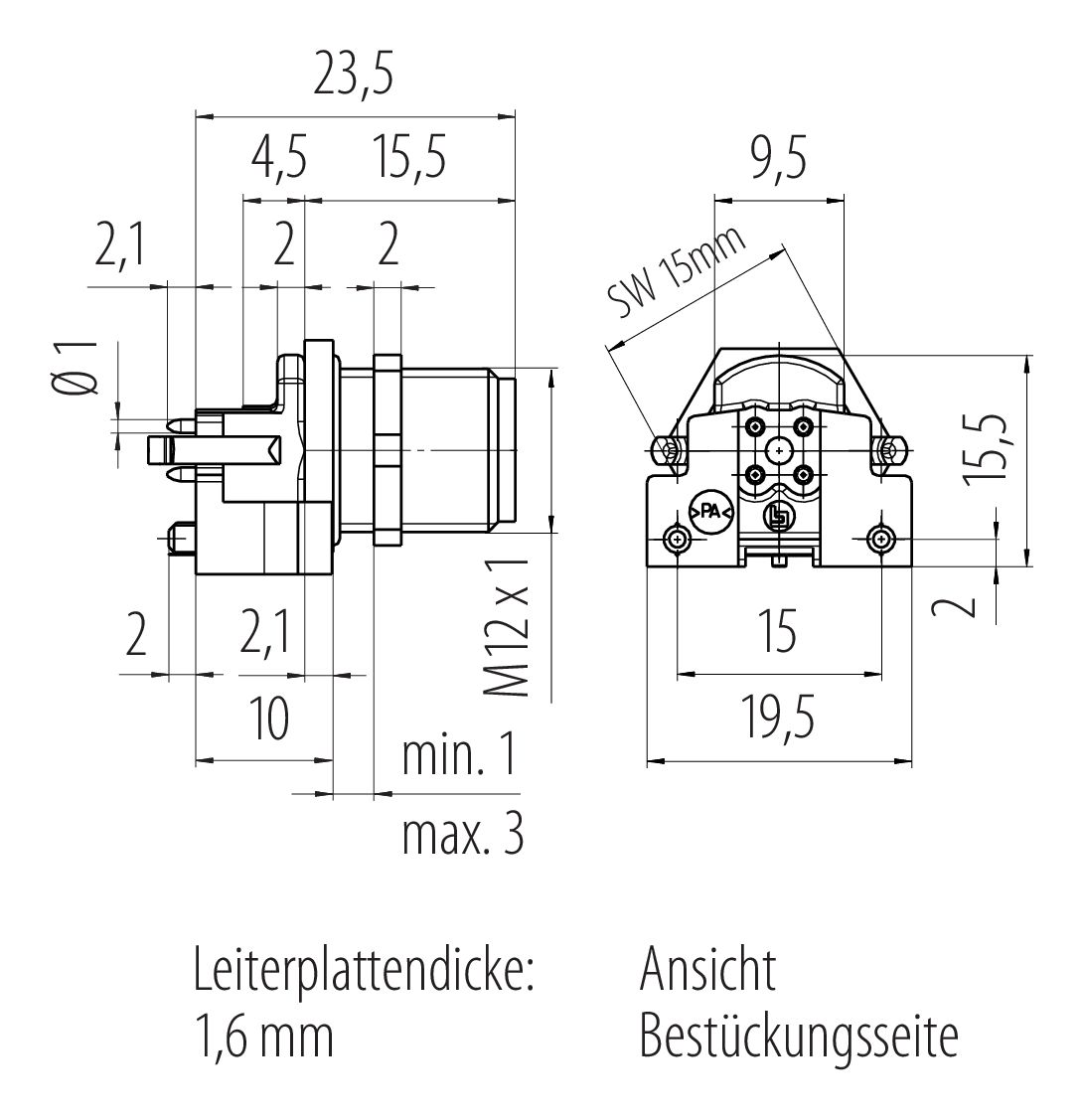 M12 Flanschstecker, Polzahl: 4, ungeschirmt, THR, IP67, UL 2238, M12x1,0, Rückwandmontage, für die Spannungsversorgung (Power), zweiteilige Ausführung
