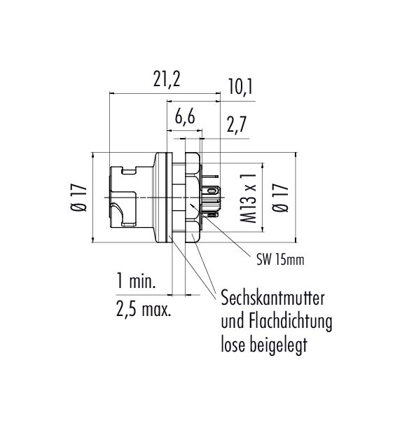 Bajonett Flanschdose, Polzahl: 5, ungeschirmt, löten, IP54 ungesteckt, M13x1,0, Frontmontage