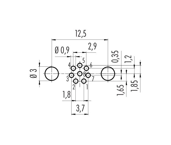 M8 Female panel mount connector, Contacts: 8, shieldable, THT, IP67, UL 2238, M10x0.75, Rear mounting