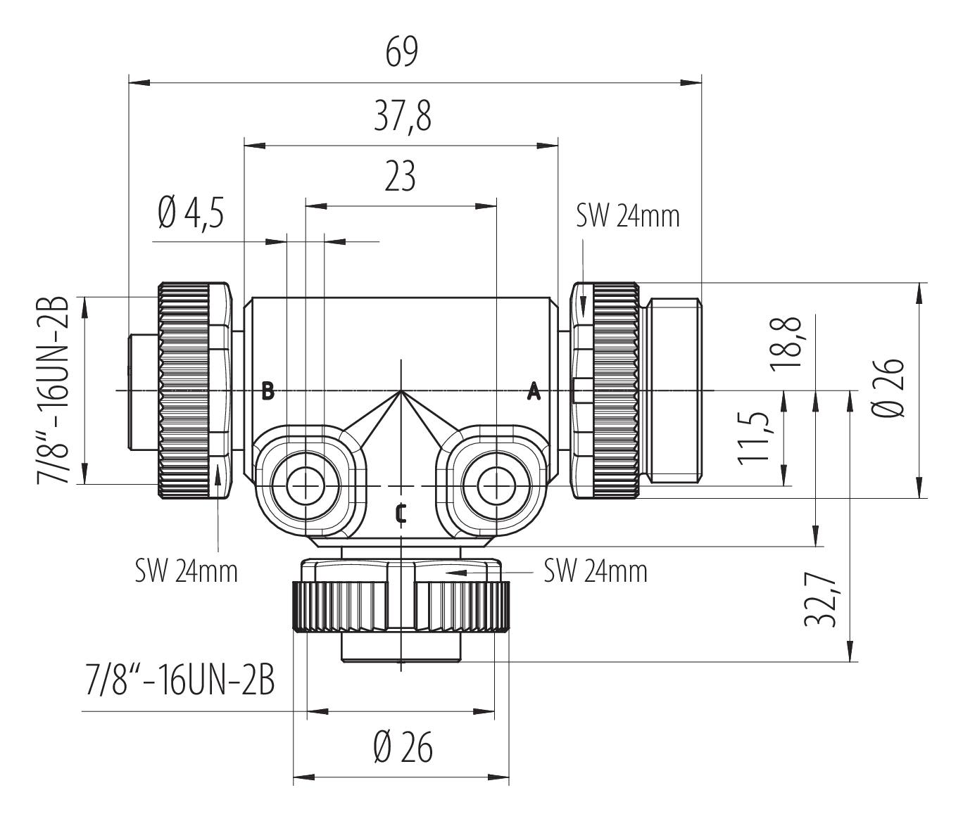 7/8" distribuidor doble, Número de contactos: 4, sin blindaje, IP68