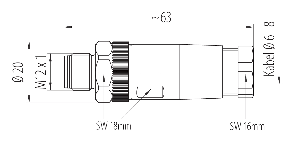 - Pour éviter l'ouverture involontaire du connecteur, lorsqu'il est utilisé dans des circuits dont la tension est dangereuse au toucher, le fil entre le boîtier et la tête du connecteur doit être fixé avec un adhésif cyanoacrylate approprié. Ceci ne s'applique pas aux connecteurs utilisés dans les circuits SELV et PELV selon la norme IEC 61140 (EN 61140, VDE 0140-1).