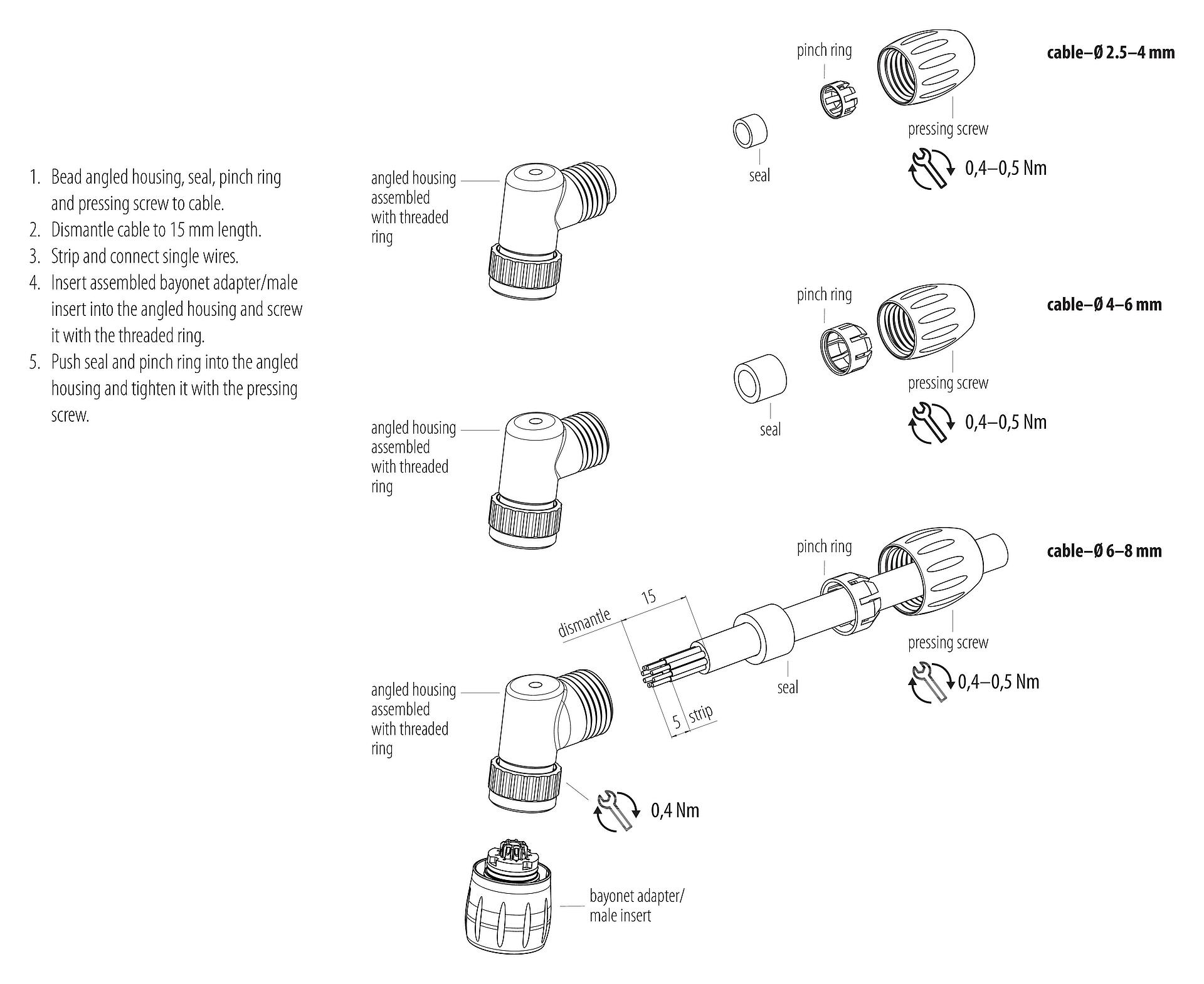 - To protect against unintentional opening of the connector, the thread between the housing and the connector head must be secured with a suitable cyanoacrylate adhesive when used in circuits with voltages dangerous to the touch. This does not apply to connectors used in SELV and PELV circuits according to IEC 61140 (EN 61140, VDE 0140-1).