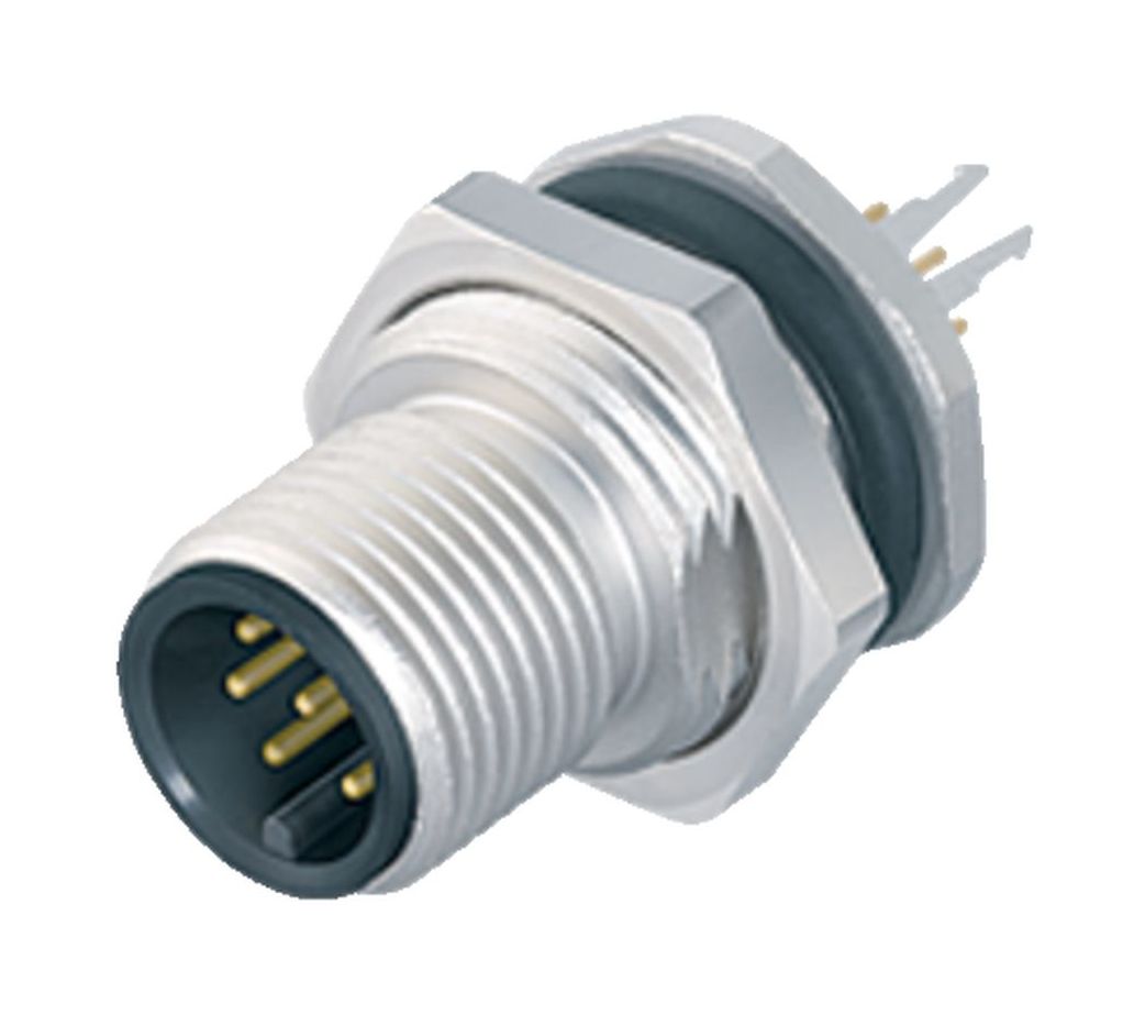 M12 Male panel mount connector, aantal polen: 5, schermbaar, THT, IP68, UL 2238, PG 9, Achterwandmontage