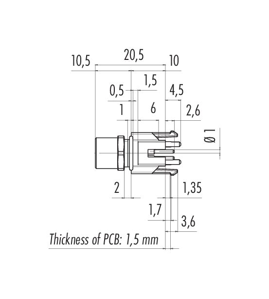 M8 Female panel mount connector, aantal polen: 3, onafgeschermd, THR, IP67, UL 2238