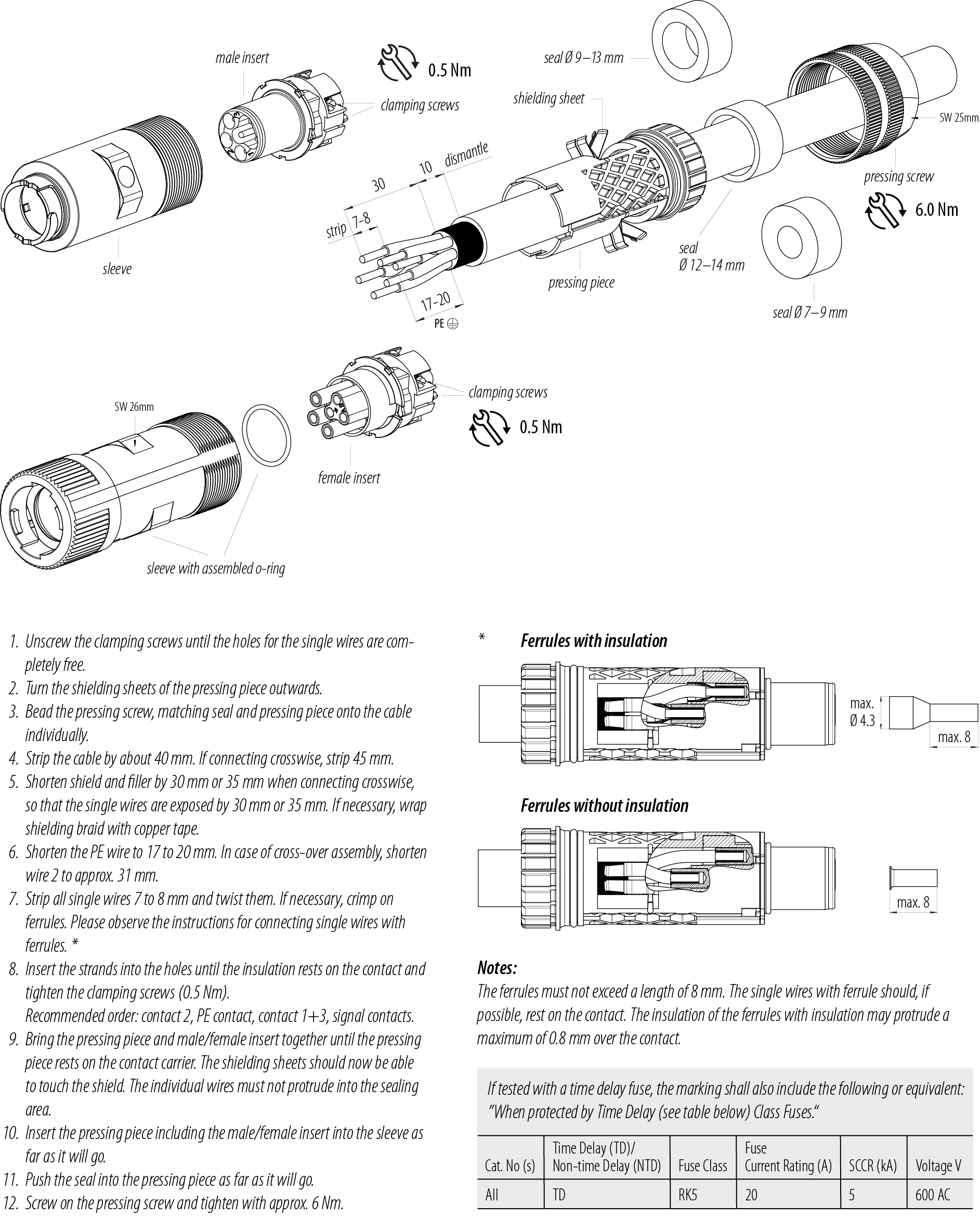 - Ter bescherming tegen onbedoeld openen van de connector, moet de schroefdraad tussen de behuizing en de connectorkop met een geschikte cyanoacrylaatlijm worden beveiligd bij gebruik in circuits met aanraakgevaarlijke spanningen. Dit geldt niet voor connectoren die worden gebruikt in SELV- en PELV-circuits volgens IEC 61140 (EN 61140, VDE 0140-1).