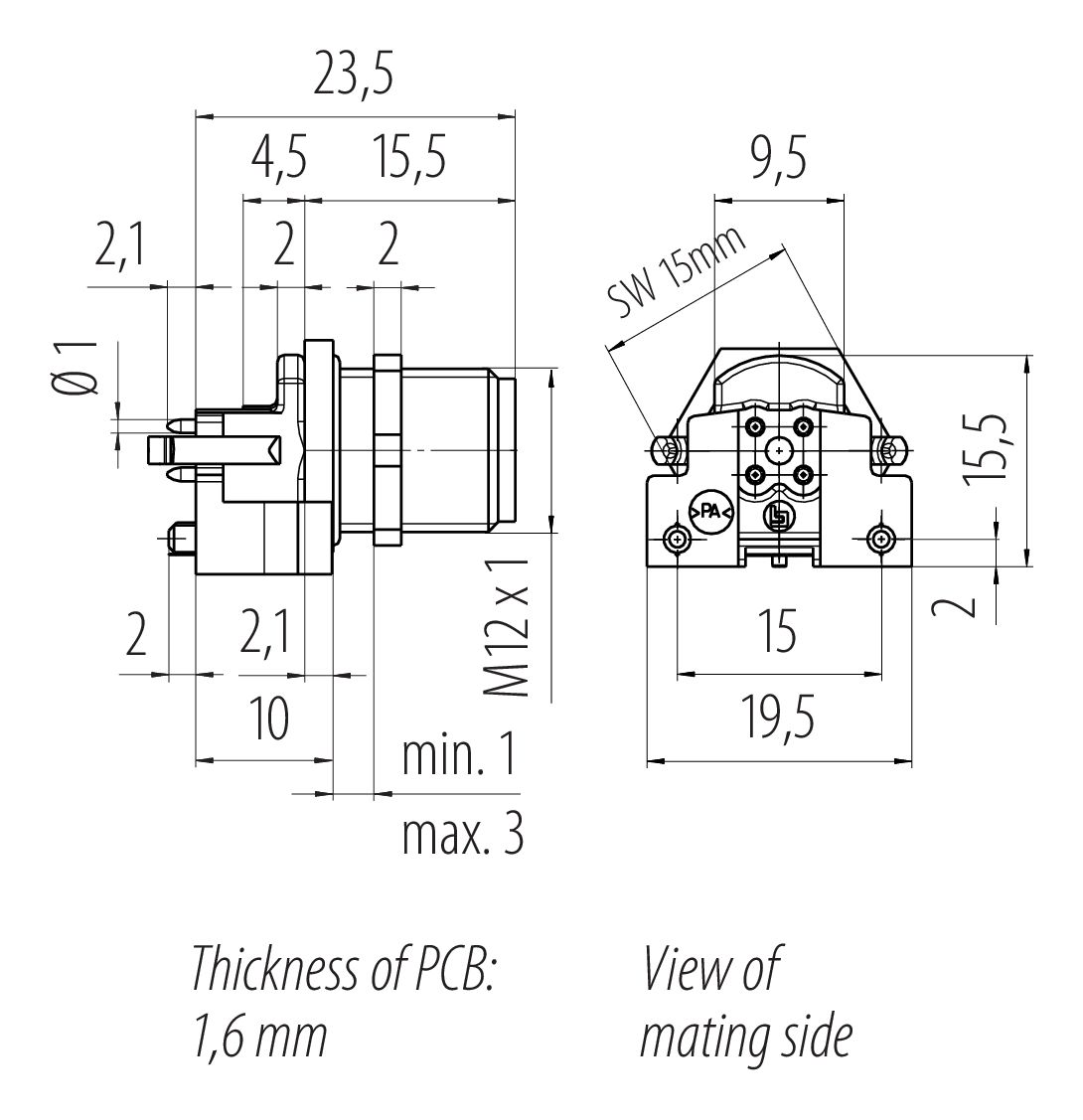 | Materiał korpusu styków | PA |