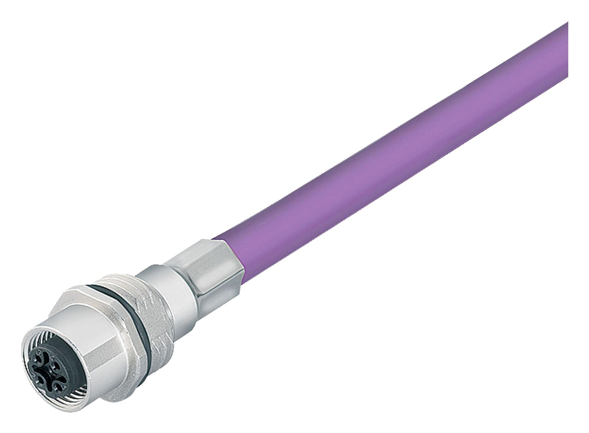 M12 Soquete de flange, Contatos: 2, blindado, com cabo montado, IP68, M16x1,5, Profibus, PUR, púrpura, 1 x 2 x 0,25 mm², Montagem frontal, 0,5 m