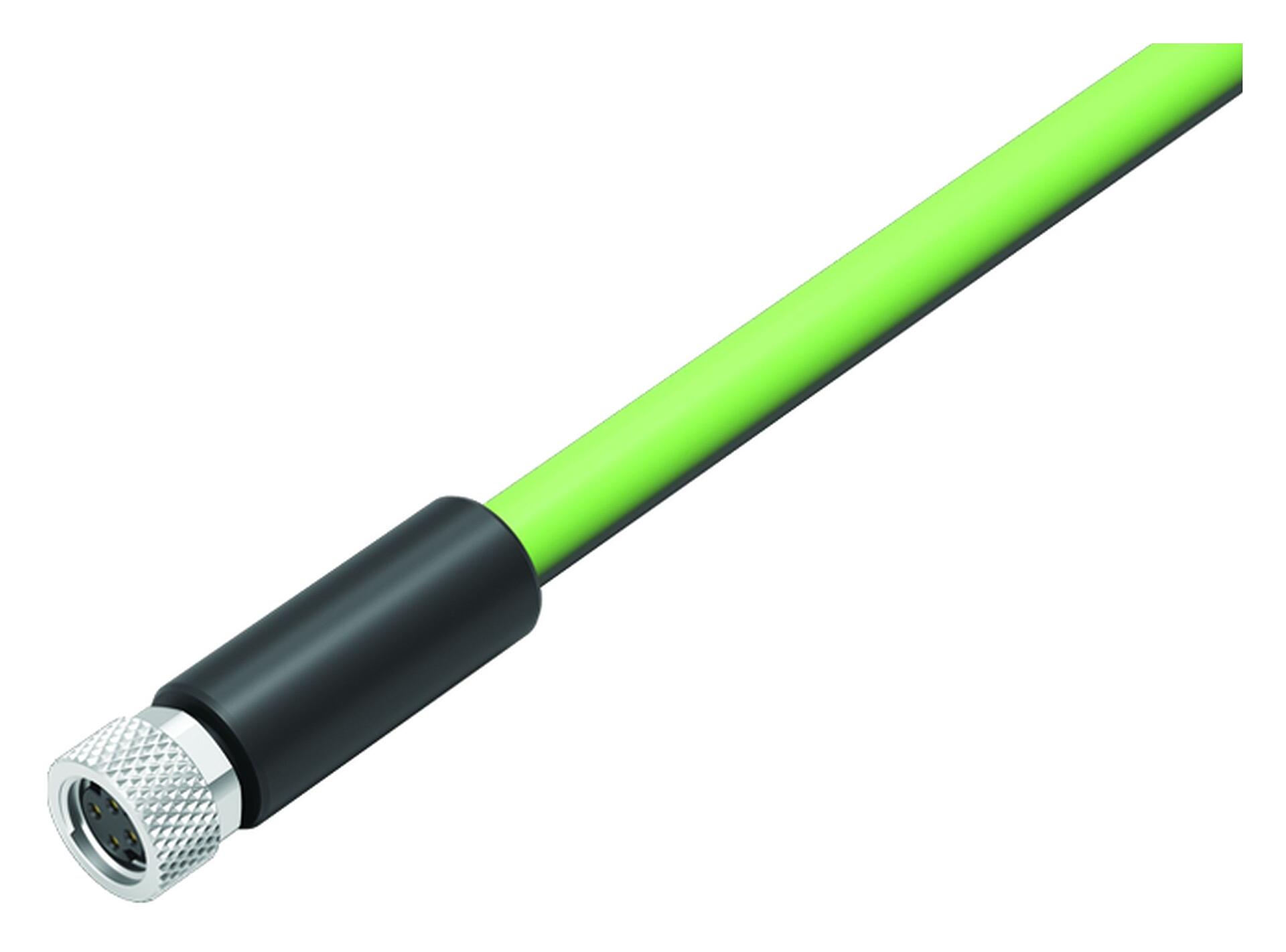 M8 Tomada de cabo, Contatos: 4, blindado, moldado no cabo, IP67, Profinet/Ethernet CAT5e, PUR, verde, 4 x AWG 22, 2 m