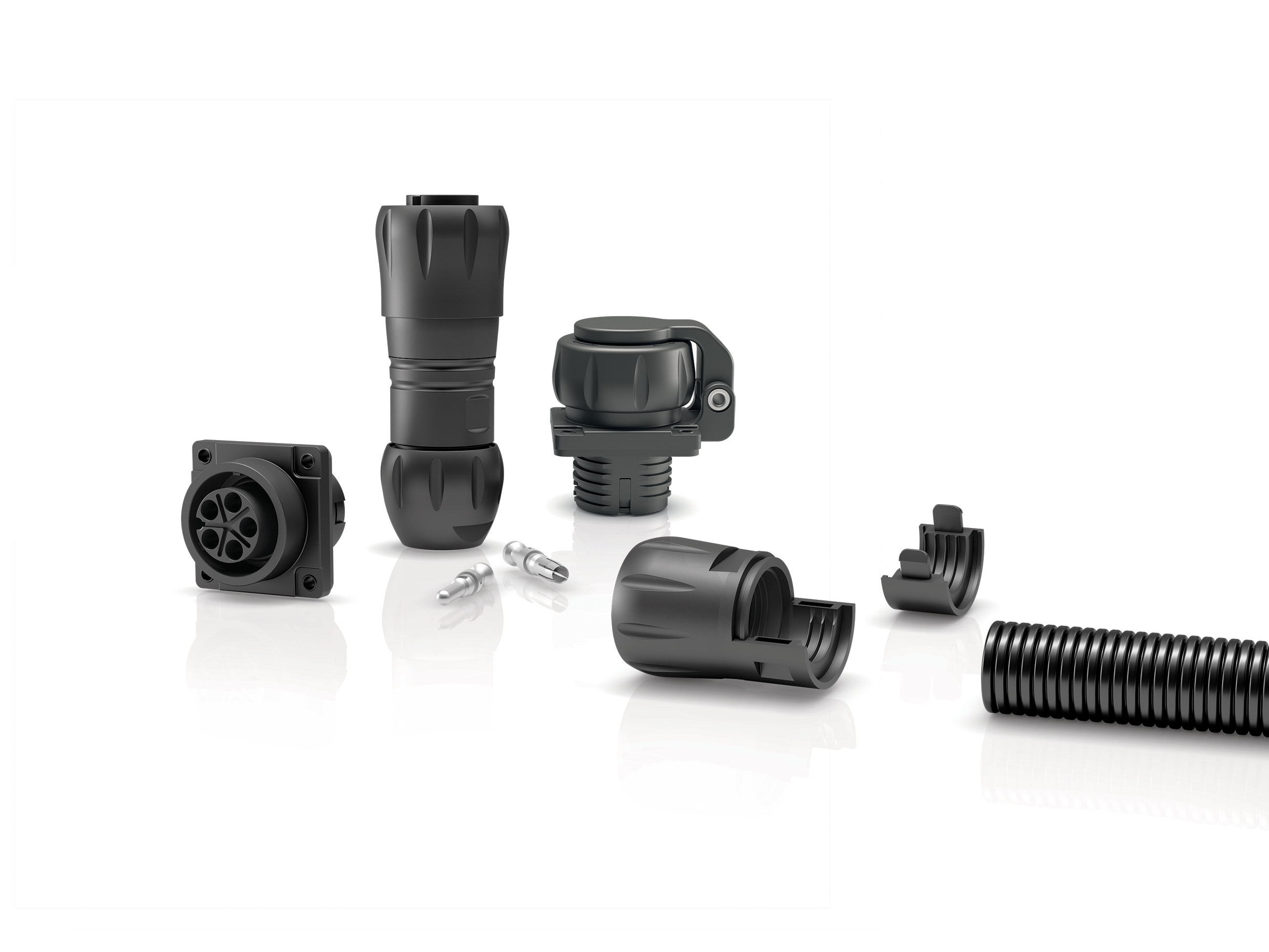 The HEC's target applications are plants in process industries, including chemical and non-contact food technology, conveyor systems, and machines in agriculture, construction, or mining and surface mining. To withstand the mechanical, chemical, and climatic impacts typical there, components of the 696 series – cable connectors and square panel mount parts – are also available with protective fittings. Thus, at the connector, the power interface meets the requirements of protection degree IP68 – and IP69K when mated. Thanks to the integrated sealing function, all wires placed in the protective fitting are protected according to IP67.