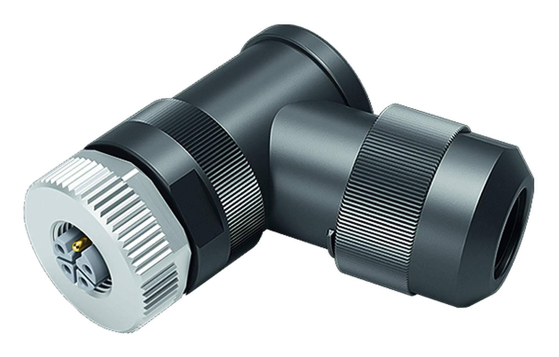 M12 Kulmarasia, Napojen määrä: 4+FE, 8,0-13,0 mm, suojaamaton, ruuviliitin, IP67, M12x1,0, virtalähde varten, UL 2237 valmisteilla, PE-liitännällä