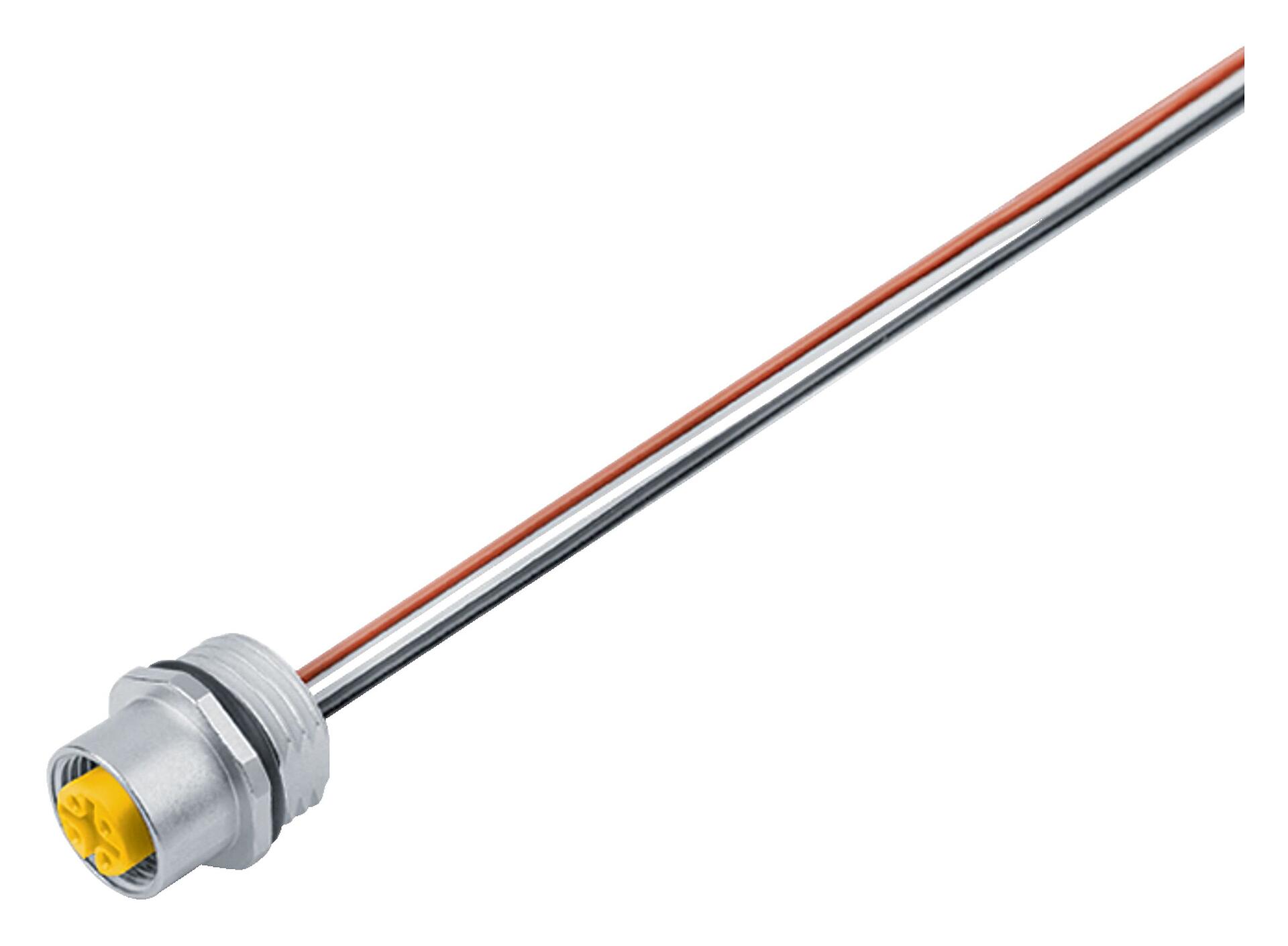 M12 Flänsuttag, antal poler: 5, oskärmad, flätad kabel, IP68, UL 2238, M16x1,5, Frammontering