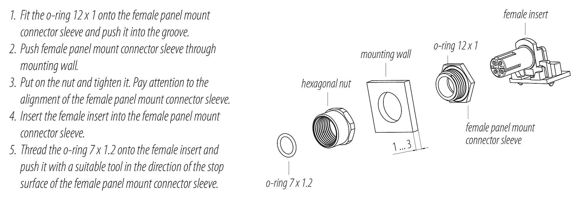 - 为了将电缆接头与设备接头锁紧,螺纹环要用 "手拧紧"(约60 cNm)。